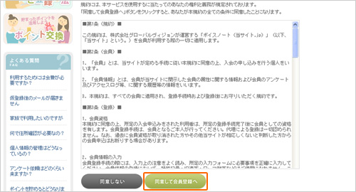 利用規約を確認し、「同意して会員登録へ」をクリックします。