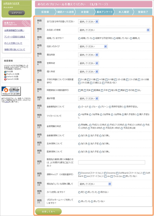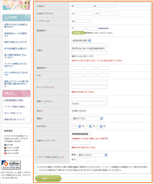 ボイスノートではより正確なアンケート実施のため、会員の皆様へ会員情報のご確認をお願いしております。