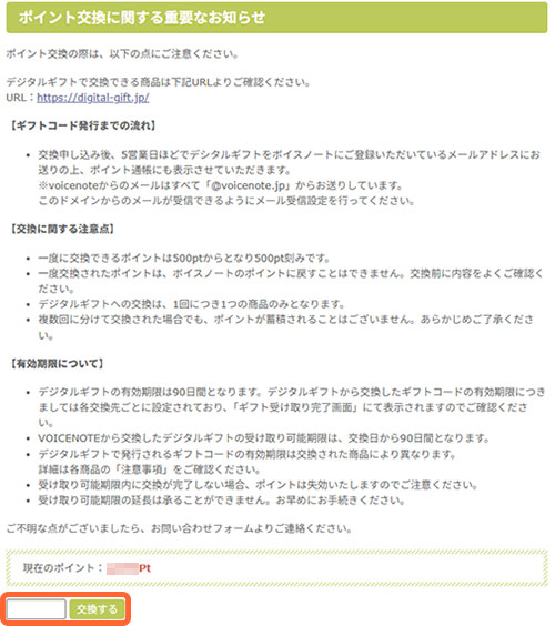 ボイスノートのポイントはデジタルギフトで交換できます。